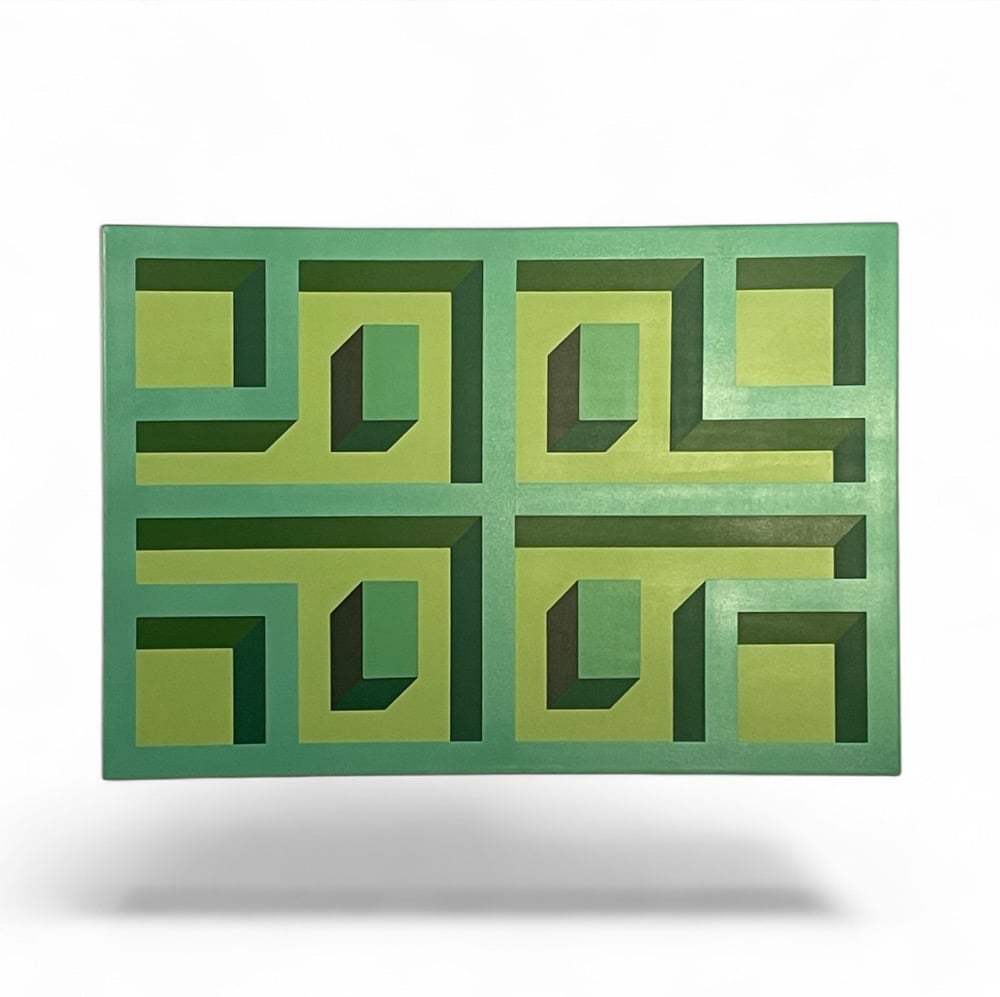 “A labyrinth of living green, twisting and branching like veins through an abstract landscape. Each path pulses with energy, drawing the eye deeper into the infinite geometry of nature’s circuitry. A hypnotic dance of growth, rhythm, and endless exploration.”
